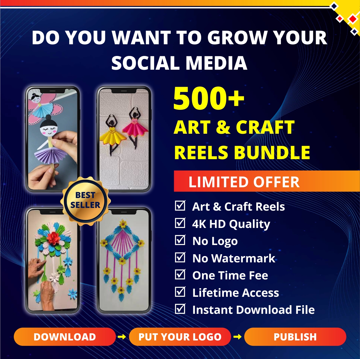 GETÂ 9000+ ART AND CRAFT REELS BUNDLE FOR CONTENT CREATORS, STUDENTS, INFLUENCERS, BUSINESS OWNERS. DOWNLOAD PUT YOUR LOGO AND PUBLISH.